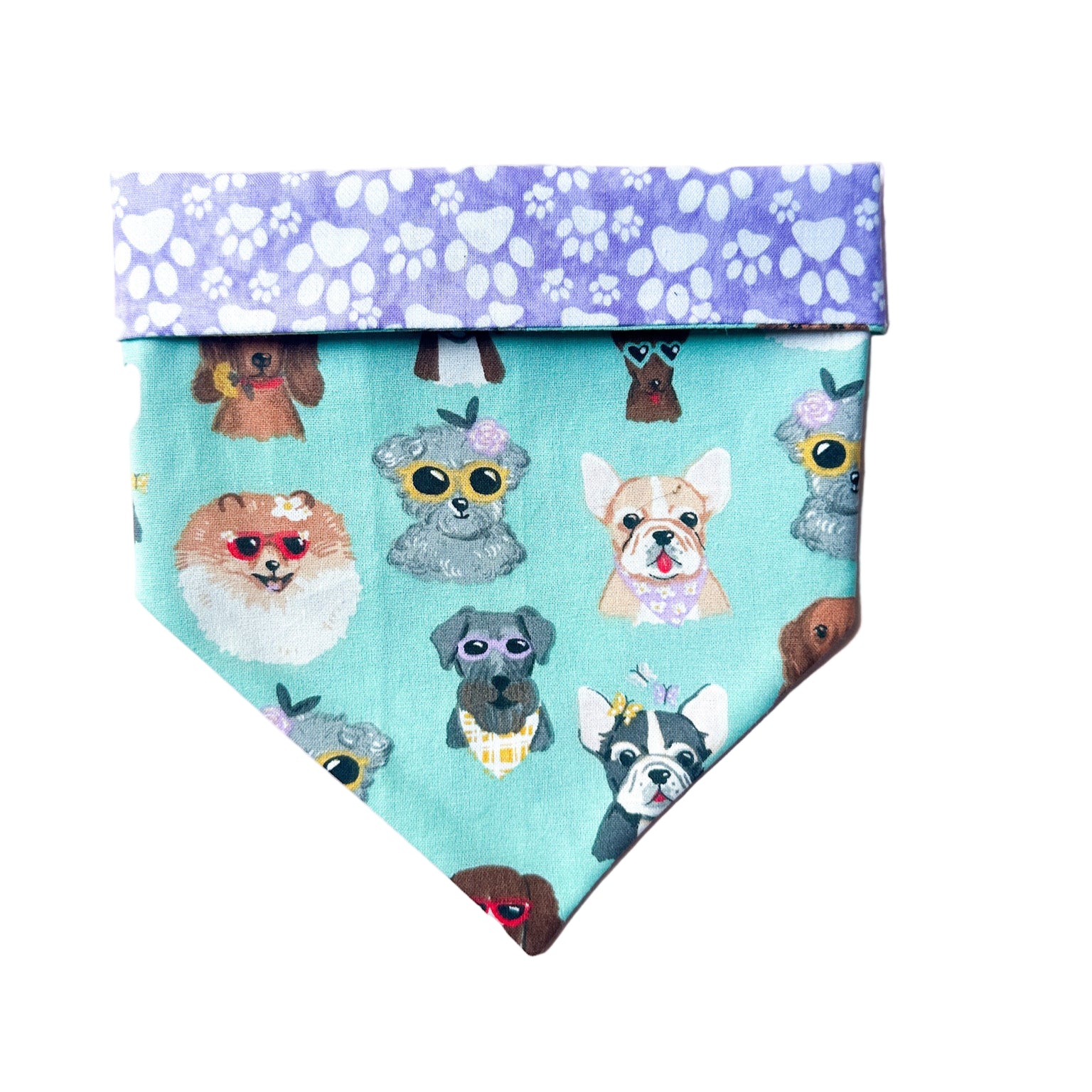 Our 100% cotton bandanas slide over your pups collar, allowing it to stay secure without the fear of it falling off!